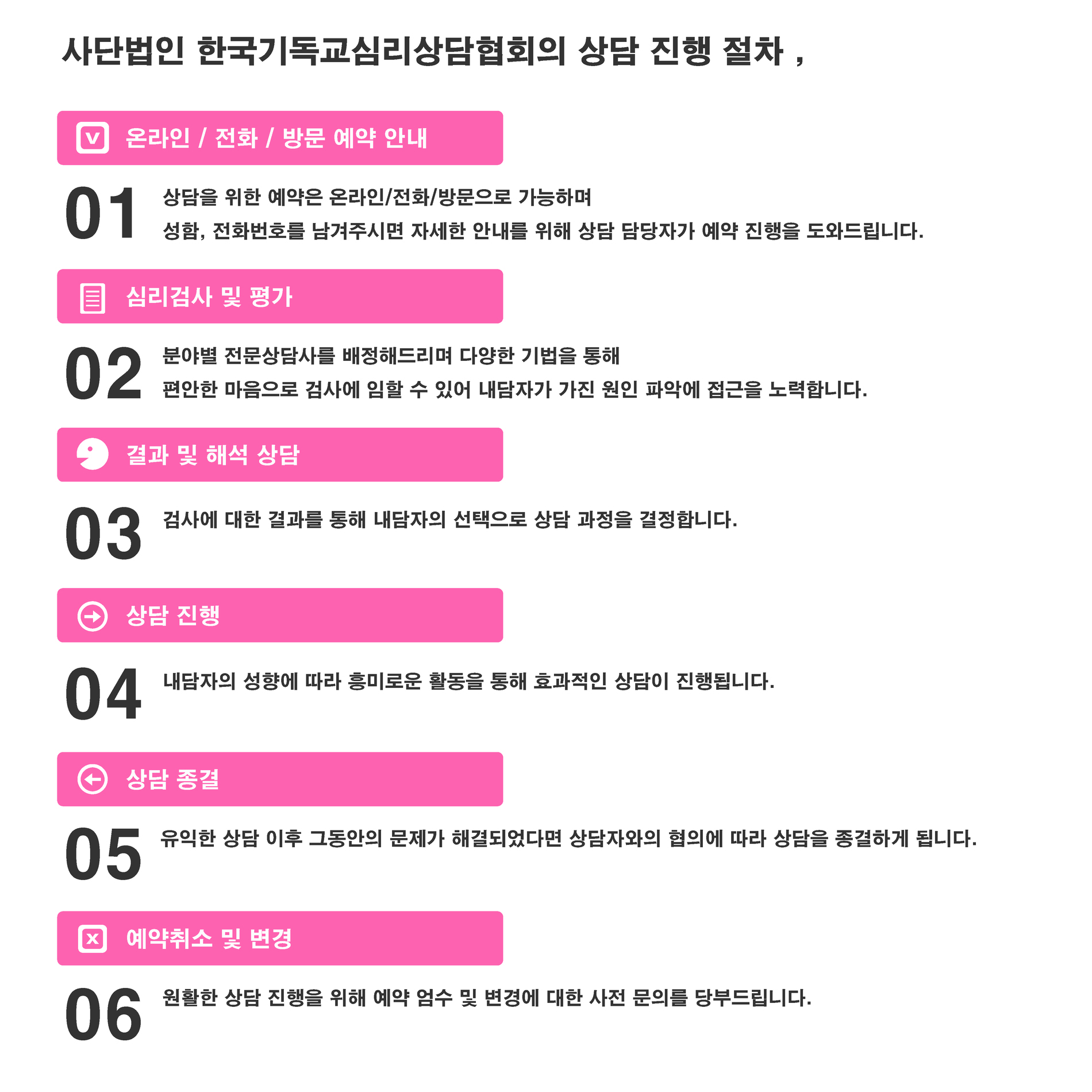 상담에 관심이 있거나 자기회복 · 예방 · 성장을 위한 분들을 위해 상담을 진행하고, 전문 심리상담가를 양성하는 교육기관 입니다.