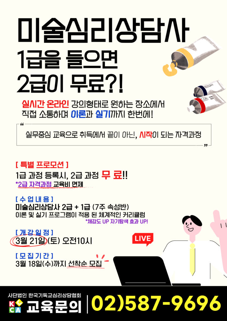 [모집]미술심리상담사 1급 자격과정 등록시 2급 수강료 무료! 실시간 온라인 교육