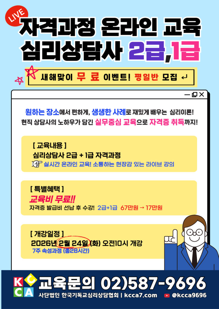 심리상담사 2급+1급 자격과정 실시간 온라인 교육