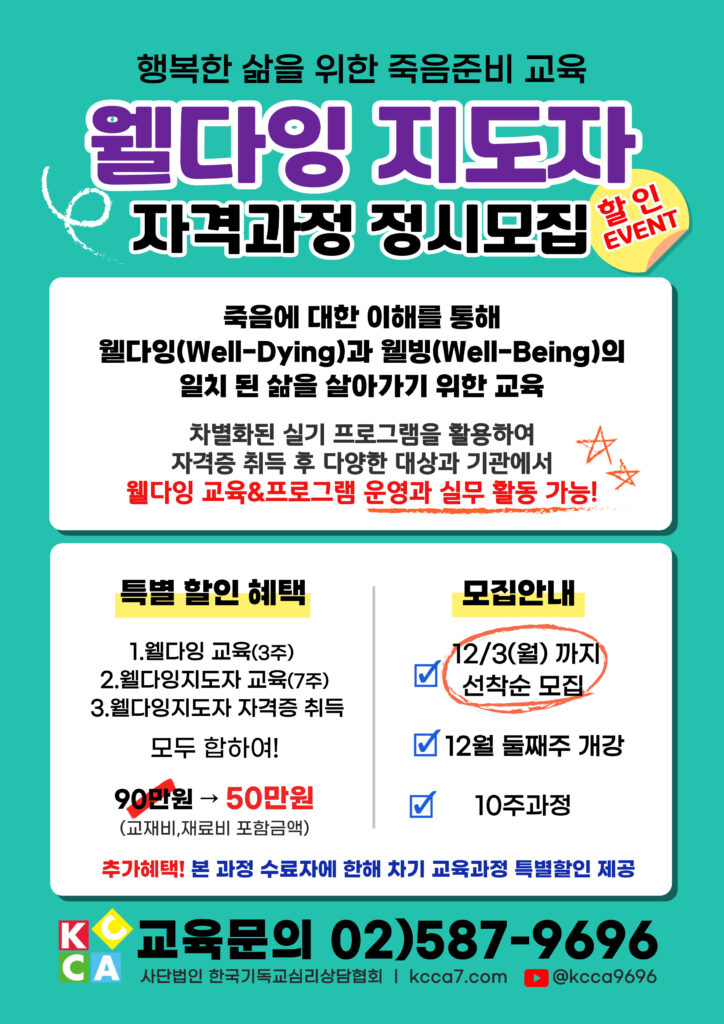 웰다잉 지도자 자격과정 정시 프로모션!!