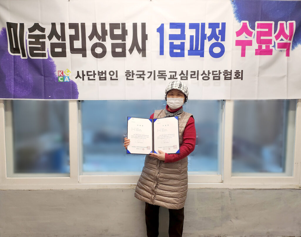20260123<미술심리상담사 2급, 1급 자격과정 수료식> Post author:편집자 Post category:협회활동 Post published:2026년 01월 31일 미술심리상담사 1급, 2급 과정 수료를 진심으로 축하드립니다 ^^ Tags: 미술심리상담사, 미술심리상담사1급, 미술심리상담사2급, 미술심리상담사자격증, 미술심리전문가, 미술치료사, 미술치료사1급, 미술치료사2급, 미술치료사자격증, 사단법인한국기독교심리상담협회 Read more articles 이전 글20260128<웰다잉지도자과정 수료식> 다음 글20260228<심리상담사 2급, 1급 과정 수료식> 답글 남기기 응답 취소답글을 게시하려면 먼저 로그인 을 해주세요.